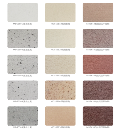 真石漆保溫裝飾一體板選用高密度、高強度A1級無機板為基材,通過精砂、滲透封閉、界面處理、飾面噴涂(輥涂)、固化、養護、復合等多道現代化生產工序加工成型。真石漆飾面表面層厚實,具有真實的自然色澤、質感,給人以高雅、和諧、莊重之美感。 基板可根據客戶需求定制其他厚度:6mm、10mm、12mm、15mm;保溫類型及保溫厚度可根據客戶設計需求搭配組合。